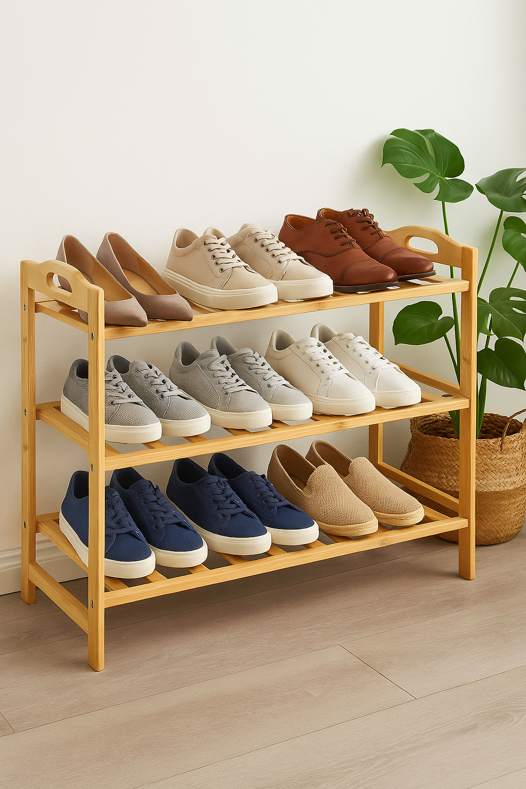 🥿 Sapateira de Bambu com 3 Andares — Organização, Elegância e Funcionalidade em um Só Produto